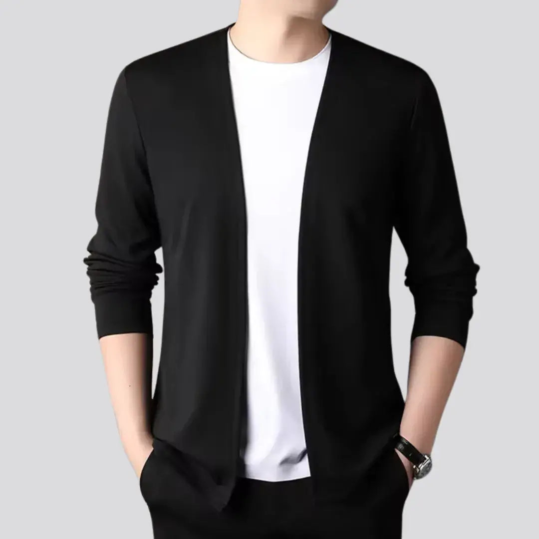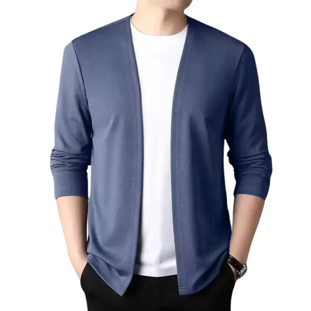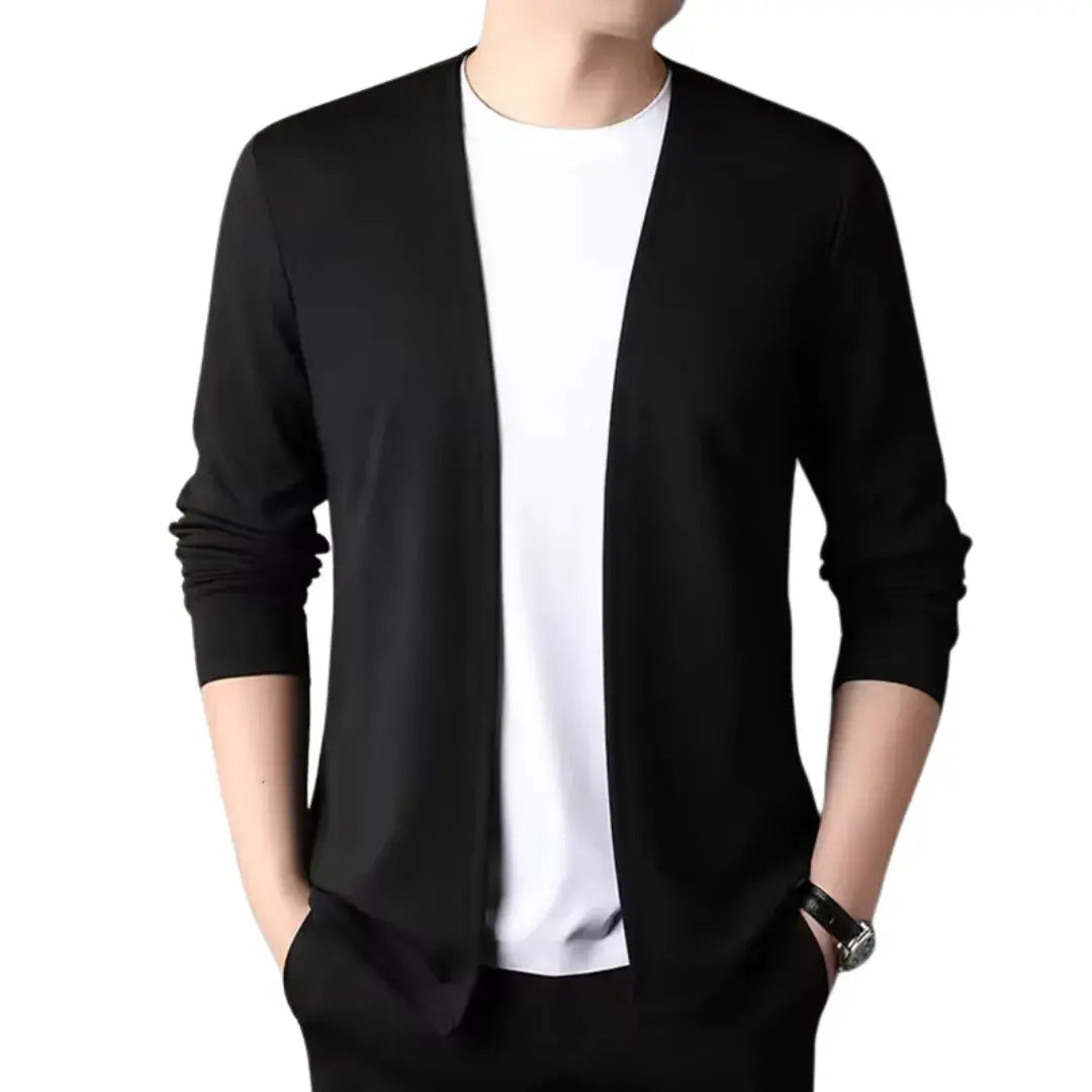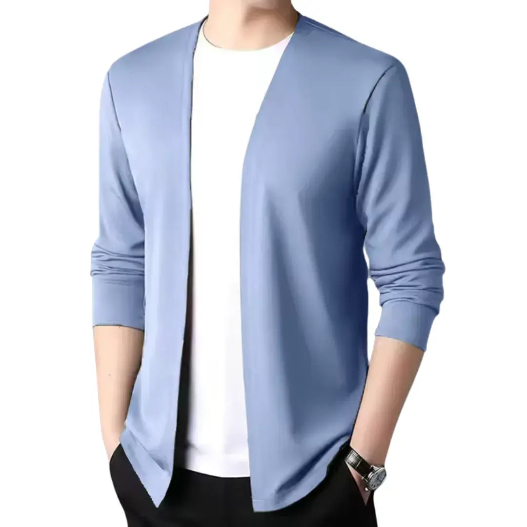 The Cardigan - Slim Flex is a men's slim-fit cardigan, perfect for spring and autumn. Made from lightweight polyester, it combines comfort and elegance with a tailored fit that enhances the masculine silhouette. Its versatile design and solid colours make it suitable for both casual outings and formal events.