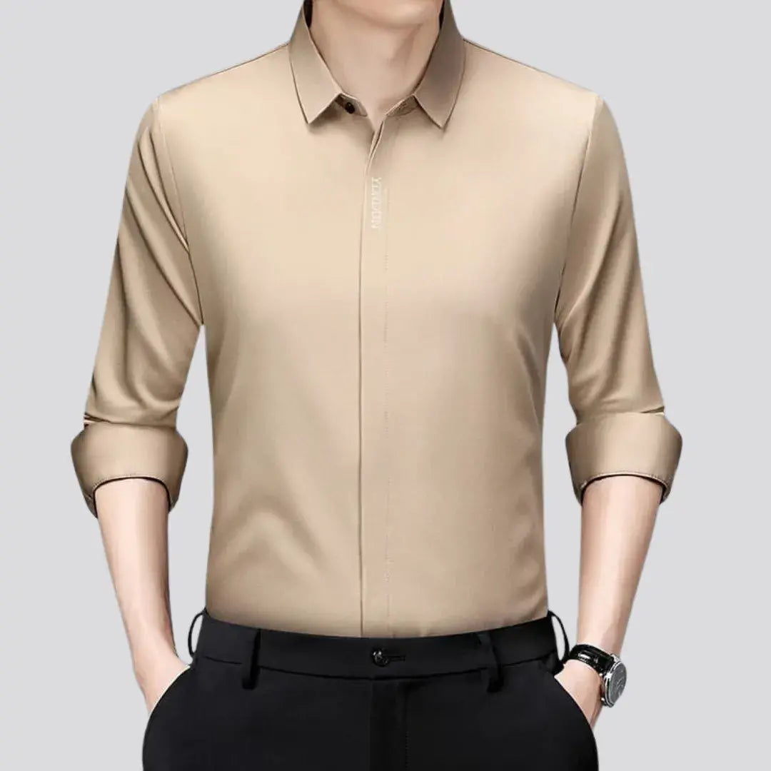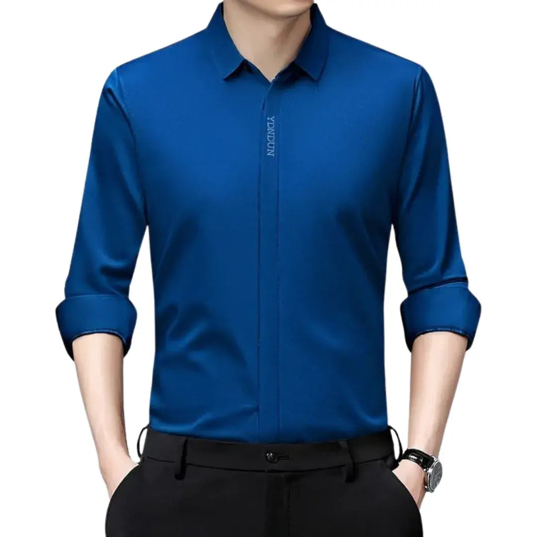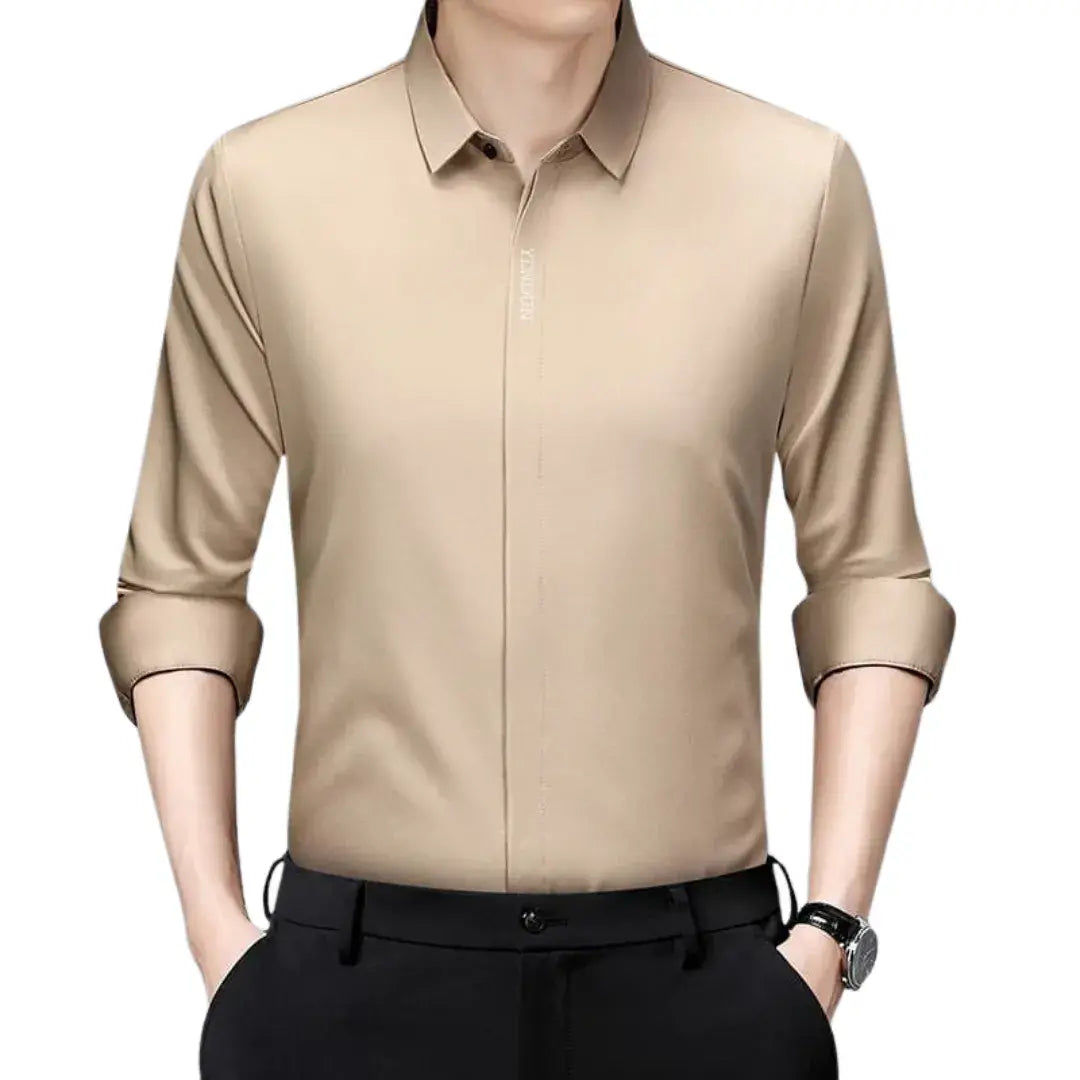 The Dress Shirt - Casual Versatility is a men's long-sleeve casual shirt, designed with a modern touch and a solid colour finish. Its standout feature is its wrinkle-resistant fabric, making it practical and comfortable for everyday wear. Suitable for all seasons, this versatile piece is a must-have for your wardrobe, effortlessly combining style and functionality.