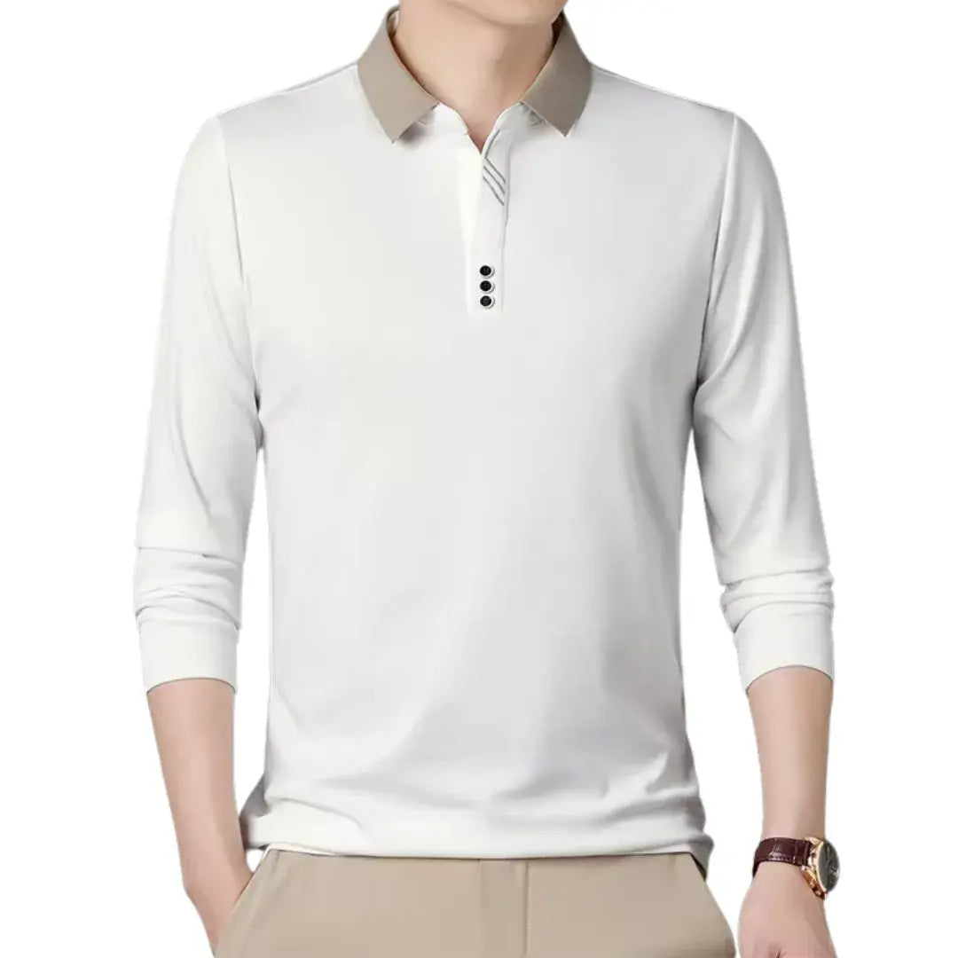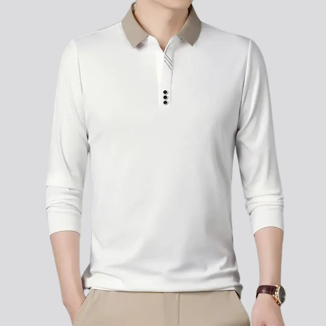 The Long-sleeve Polo Shirt - Solid Style Essential is a versatile long-sleeve polo crafted from sweatshirt fabric, combining comfort and style. Its classic solid-colour design and V-neck add a modern and sophisticated touch, making it suitable for both casual occasions and relaxed business looks.