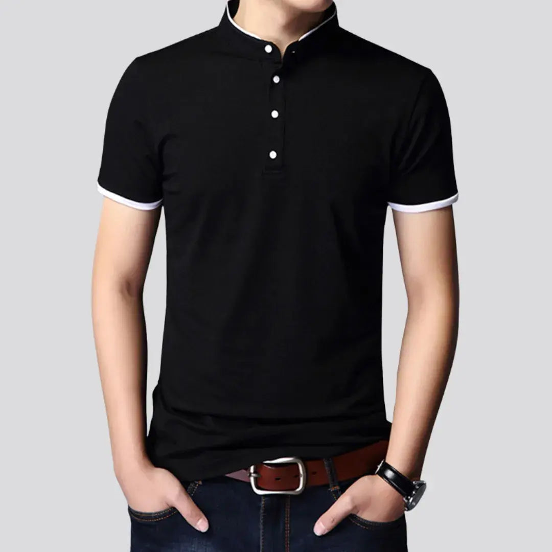 The Polo Shirt - Solid Comfort is a men's casual polo ideal for hot summer days. Made from solid cotton, it offers exceptional comfort and breathability to keep you fresh and stylish. Featuring short sleeves and a classic design, this versatile piece pairs seamlessly with shorts or jeans for a relaxed yet elegant look.